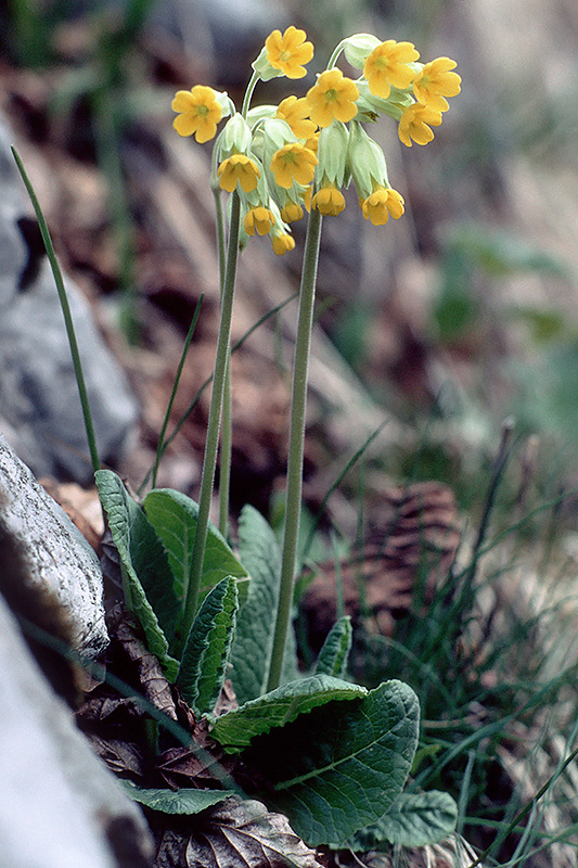 Am Wegesrand blüht die Echte Schlüsselblume. Informationen zur Pflanze: Art: Echte Schlüsselblume (Primula veris). Verbreitung: Europa mit Ausnahme des Südens der Mittelmeerländer und des äussersten Nordens, Vorderasien. Regionale Verbreitung Alpen: In Höhen zwischen 500 und 2000 m. Fast ausschliesslich in den Kalkalpen, fehlt in grösseren Gebieten. Vorkommen: Kalk- und humusreiche, lockere, warme Böden - wenig gedüngte Weiden, Zwergstrauchheiden, lichte Laubwälder. Wuchshöhe: 15 - 30 cm. Blüte: März - April, Blütenlänge 0.8 - 2 cm. |