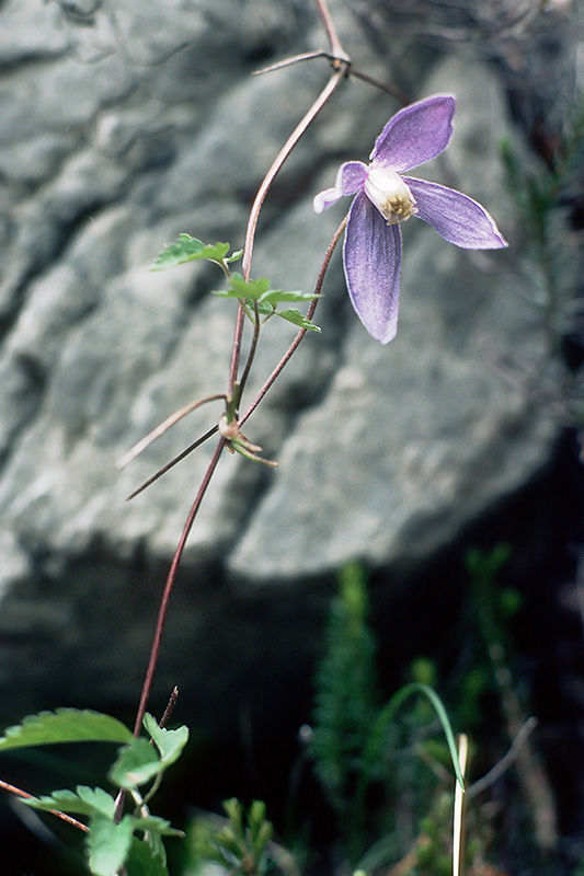 Die Alpen-Waldrebe ist die einzige in den Alpen vorkommende Liane. Informationen zur Pflanze: Art: Alpen-Waldrebe (Clematis alpina). Verbreitung: Südwest- und Ostalpen, Pyrenäen, Apennin, Karpaten, Balkangebirge. Regionale Verbreitung Alpen: In Höhen zwischen 1000 und 2300 m, nicht selten aber auch in den Talgründen. Zerstreut, in den Zentralketten selten. Vorkommen: Nährstoffarme, humose, steinige, gerne halbschattige Kalkböden - Gebüsche, Wälder, Blockhalden, Felsen. Wuchshöhe: 100 - 300 cm. Blüte: Mai - Juli. |
