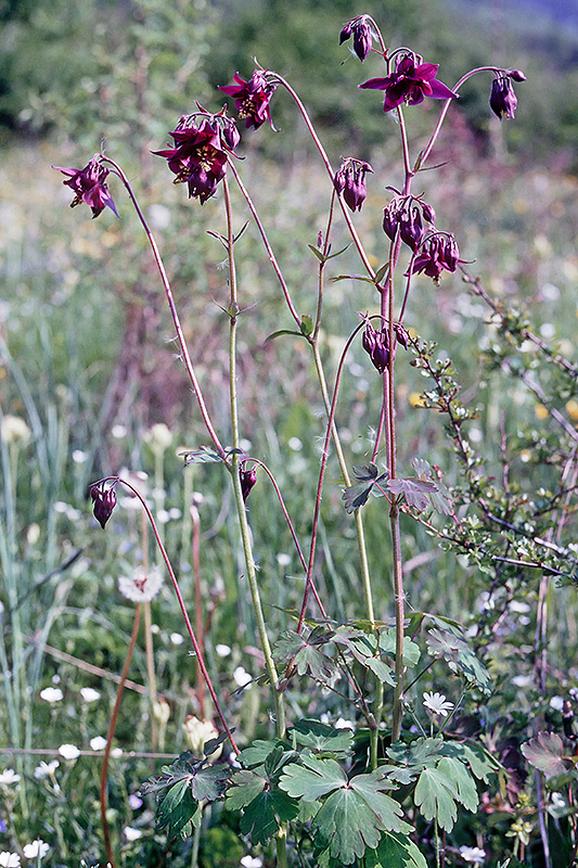 Etwas tiefer blüht bereits die Dunkle Akelei. Informationen zur Pflanze: Art: Schwarzviolette Akelei (Aquilegia atrata). Verbreitung: Alpen, Alpenvorland, Apennin. Regionale Verbreitung Alpen: In Höhen bis 2000 m. In Ketten mit Kalk, im Westen zerstreut, im Osten teilweise auch selten. Vorkommen: Kalkreiche Böden - Niedermoorwiesen, Hochstaudenfluren, Wälder, Waldränder. Wuchshöhe: 20 - 60 cm. Blüte: Mai - Juli, Blütendurchmesser 5 - 7 cm. |
