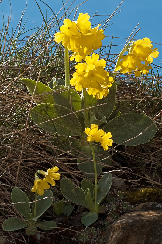 In den steinigen Böden der höheren Lagen stehen die Alpen-Aurikel in voller Blüte.