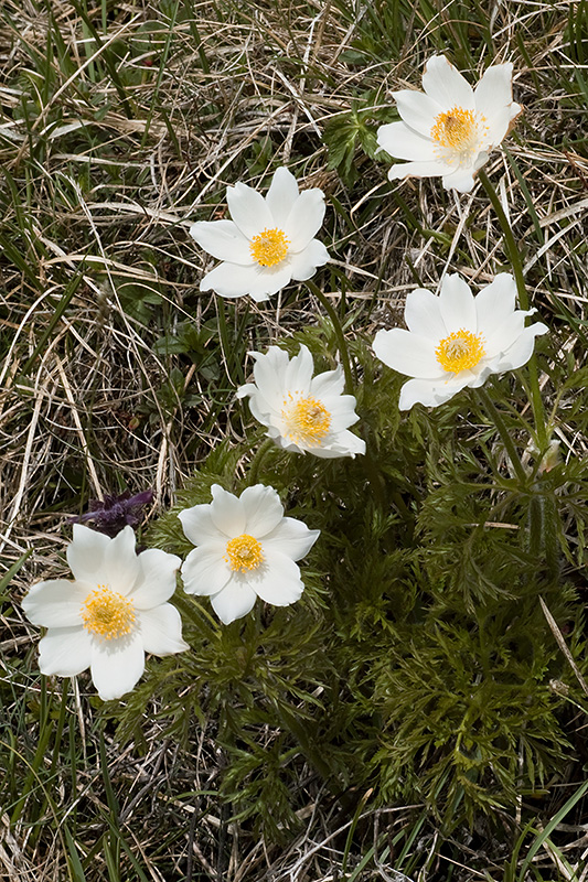 Vereinzelt finden sich auch kleinere Bestände der Alpen-Küchenschelle.