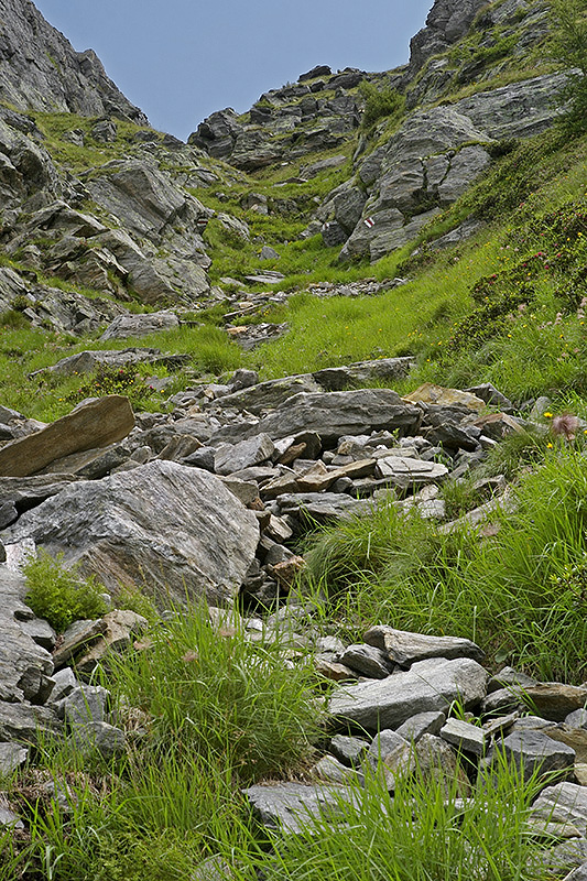 Der Blick aus dem Kessel Fornale hoch zum gleichnamigen Passo ...