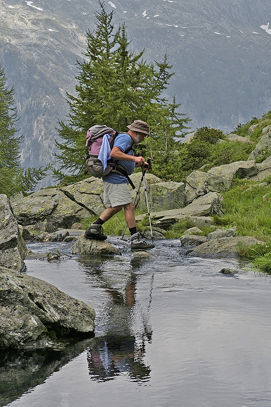 Heiri quert den Abfluss des Lago di Mognòla.