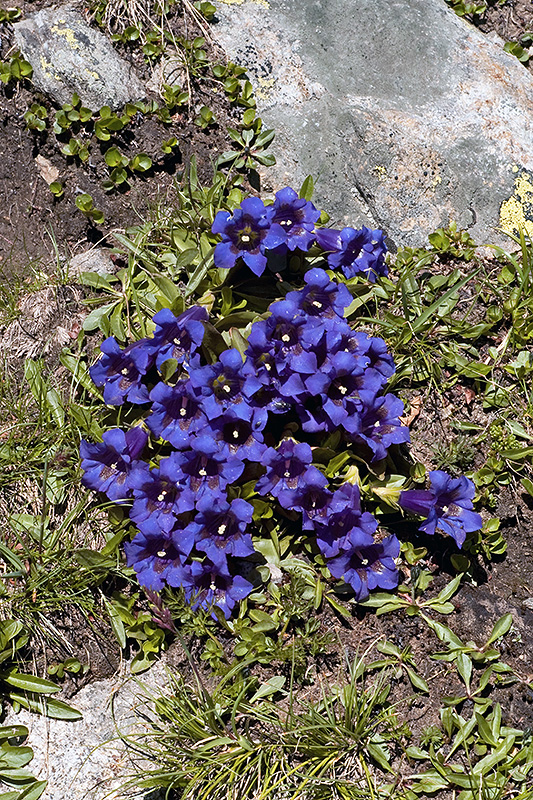 Büschelweise Vertreter des Clusius-Enzians locken mit ihren tiefblauen Kelchen.
