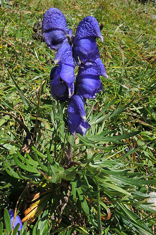 Der Blaue Eisenhut ist eine alte, sehr formenreiche Gift- und Heilpflanze. Alle Pflanzenteile, besonders jene der Wurzel, sind stark giftig. Bereits 0,2 Gramm der Wurzel bewirken Vergiftungserscheinungen, 2 Gramm sind tödlich. Das oberste Kelchblatt erinnert an einen altertümlichen Helm und gab der Gattung den Namen. Informationen zur Pflanze: Art: Blauer Eisenhut (Aconitum napellus). Verbreitung: Europäische Gebirge, höhere Lagen der Mittelgebirge. Regionale Verbreitung Alpen: In Höhen bis gegen 3000 m, zerstreut. Vorkommen: Lockere, humusreiche, gut durchfeuchtete, kalkhaltige Böden - Bruchwälder, Bachufer, Quellfluren, Lägerflur der Viehweiden. Wuchshöhe: 50 - 180 cm. Blüte: Juni - August. |