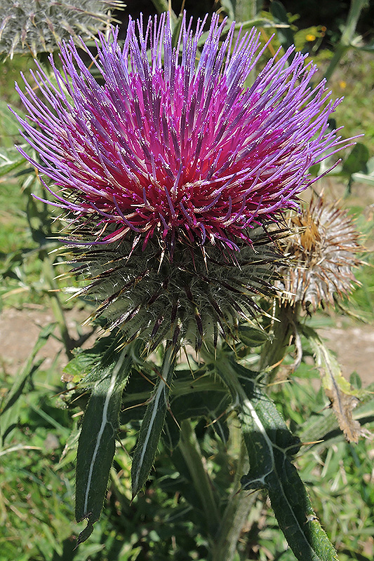 Die Wollköpfige Kratzdistel ist ein imposantes und durchaus wehrhaftes Gewächs. Informationen zur Pflanze: Art: Wollkopf-Kratzdistel (Cirsium eriophorum). Verbreitung: Europäisch, England bis Apennin und Pyrenäen bis nördlicher Balkan, in Höhen bis 2300 m. Vorkommen: Kalkhaltige oder saure, sonnige, trockene, steinige Böden - Wegränder, Weiden, Hänge, Kahlschläge. Wuchshöhe: 50 - 150 cm. Blüte: Juli - September, Blüte 4 - 7 cm Durchmesser. |