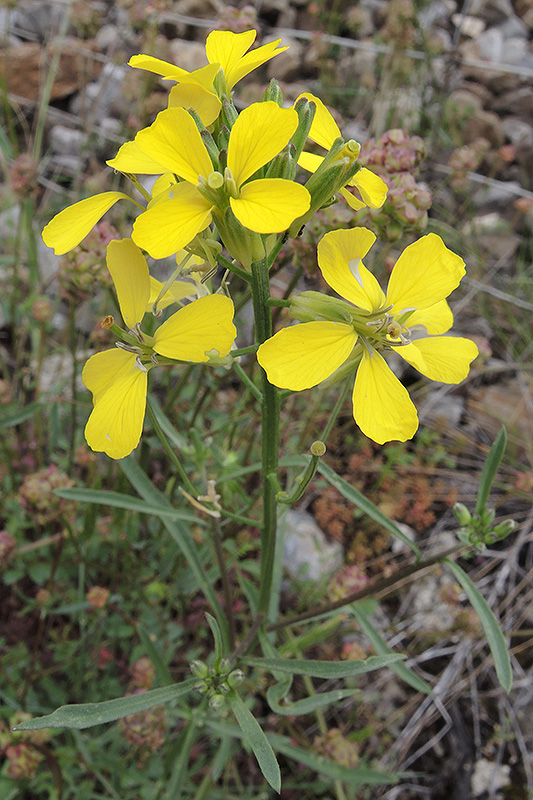 Das Hauptverbreitungsgebiet des Schweizer Schöterichs liegt südlich des Alpenhauptkamms im Wallis, Tessin und in Graubünden. Informationen zur Pflanze: Art: Schweizer Schöterich (Erysimum rhaeticum). Verbreitung: Alpine Regionen Mitteleuropas. Regionale Verbreitung Alpen: Alpen in Höhen zwischen 500 und 2500 m, ostwärts bis Vinschgau und Tirol, zerstreut. Vorkommen: Sonnige, nicht allzu trockene Steinböden - Felsen, Gesteinsschutt, Trockenrasen, lichte Gebüsche, Anschwemmungen. Wuchshöhe: 10 - 50 cm. Blüte: Juni - Juli, Länge der Blütenblätter 1 - 2 cm. |