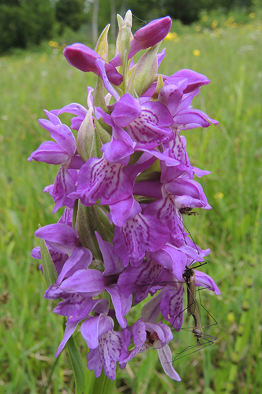 In den Feuchtwiesen der Butzi findet sich die Fleischfarbene Fingerwurz in voller Blüte. Informationen zur Pflanze: Art: Fleischfarbene Fingerwurz (Dactylorhiza incarnata). Verbreitung: Eurasiatisch. Regionale Verbreitung Alpen: In Höhen bis 1000 m, ganz selten bis 2000 m, zerstreut. Vorkommen: Mindestens zeitweise feuchte, kalkhaltige oder versauerte, tonige Böden - Flachmoore, nasse Wiesen, nasse und lichte Wälder. Wuchshöhe: 20 - 60 cm. Blüte: Mai - Juli. |
