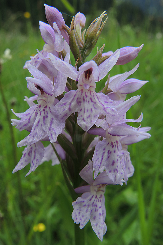 Von Fuchs’ Fingerwurz finden sich erst einige wenige blühende Exemplare. Informationen zur Pflanze: Art: Fuchs’ Fingerwurz (Dactylorhiza fuchsii). Verbreitung: Europäisch, ostwärts bis Sibirien. Regionale Verbreitung Alpen: In Höhen bis 2300 m, häufig. Vorkommen: Trockene bis mässig feuchte Wiesen, Weiden, Moore, Waldlichtungen, Strassenränder und -böschungen. Wuchshöhe: 20 - 90 cm. Blüte: Juni - Juli. |