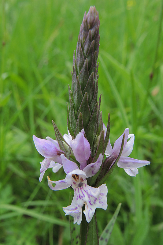 An manchen Pflanzen öffnen sich gerade die ersten Blüten. Informationen zur Pflanze: Art: Fuchs’ Fingerwurz (Dactylorhiza fuchsii). Verbreitung: Europäisch, ostwärts bis Sibirien. Regionale Verbreitung Alpen: In Höhen bis 2300 m, häufig. Vorkommen: Trockene bis mässig feuchte Wiesen, Weiden, Moore, Waldlichtungen, Strassenränder und -böschungen. Wuchshöhe: 20 - 90 cm. Blüte: Juni - Juli. |
