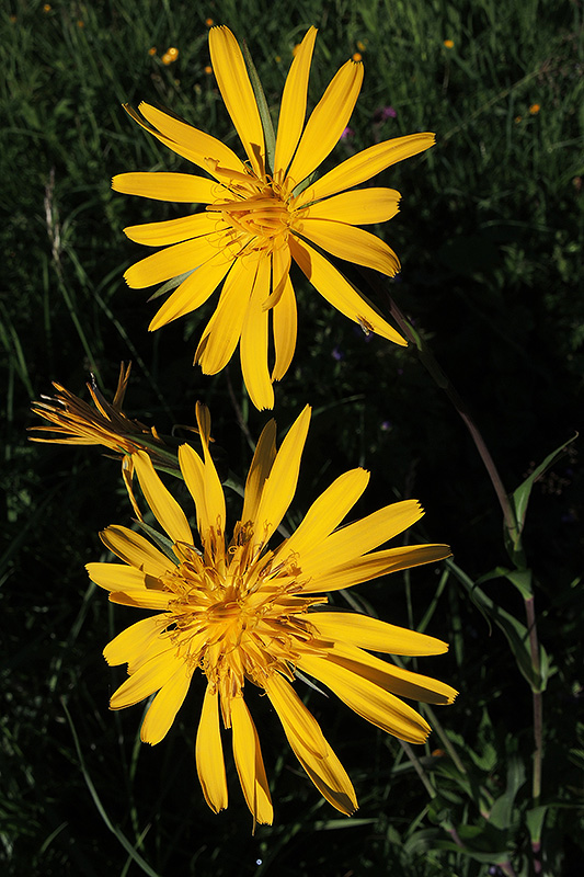 Die Feuchtwiesen der Butzi stehen in voller Blüte. So erstrahlt auch der Wiesen-Bocksbart, dessen Blütenstände sich nur bei schönem Wetter öffnen und sich bereits um die Mittagszeit wieder schliessen. Informationen zur Pflanze: Art: Wiesen-Bocksbart (Tragopogon pratensis). Verbreitung: Europäisch, ostwärts bis in den Ural, in Nordeuropa weitgehend fehlend. In Nordamerika eingeschleppt. Vorkommen: Frische, sommerwarme, nährstoff- und basenreiche, mittel- bis tiefgründige Böden ohne Staunässe - Fettwiesen, wegbegleitende Unkrautfluren. Wuchshöhe: Bis 70 cm. Blüte: Mai - Juli, Blütendurchmesser bis 6 cm. |