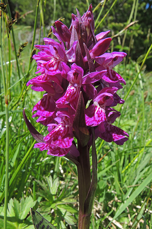 In den Feuchtwiesen um das Fürkle erfreuen ausgedehnte Bestände der Breitblättrigen Fingerwurz das Auge. Informationen zur Pflanze: Art: Breitblättrige Fingerwurz (Dactylorhiza majalis). Verbreitung: Europäisch, südlich von Nord-Spanien über Nord-Italien und Dalmatien bis Rumänien, nördlich bis Südschweden und Südnorwegen, östlich bis Sibirien. Regionale Verbreitung Alpen: In Höhen bis über 2000 m, zerstreut, stellenweise häufig. Im Jura zerstreut, im Flachland selten. Vorkommen: Mässig kalkhaltige, nährstoffreiche, mindestens frühjahrsnasse, unbeschattete, sonnige Böden - Feuchtwiesen, Flachmoore, Quellmulden, Bäche, Gräben, lichte Auenwälder. Wuchshöhe: 15 bis 40 cm. Blüte: Mai - August. |