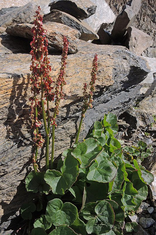 Der Säuerling gilt als Pionierpflanze. Der Name leitet sich vom säuerlichen Geschmack seiner Blätter her. Informationen zur Pflanze: Art: Säuerling (Oxyria digyna). Verbreitung: Pyrenäen, Alpen, Karpaten bis Asien, arktische Region. Regionale Verbreitung Alpen: Überwiegend in den zentralen Ketten, in Höhen zwischen 1700 und 3400 m, zerstreut. Vorkommen: Kalkarme, feuchte Böden - Felsschutt, schneefeuchter Steinrasen. Wuchshöhe: 5 - 30 cm. Blüte: Juli - August. |