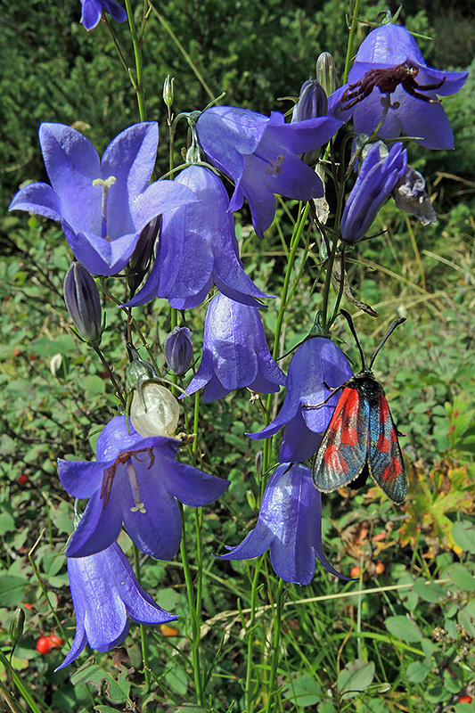 Blutströpfchen und Krabbenspinne bevölkern die Rundblättrige Glockenblume. Informationen zur Pflanze: Art: Rundblättrige Glockenblume (Campanula rotundifolia). Verbreitung: Nord- bis Südeuropa, Sibirien und Nordamerika. Vorkommen: Trockene bis frische, meist saure Böden - Magerwiesen, Weiderasen, Waldsäume, Felsen. Wuchshöhe: 10 - 40 cm. Blüte: Mai - September, Blütenlänge 1 - 2 cm. |