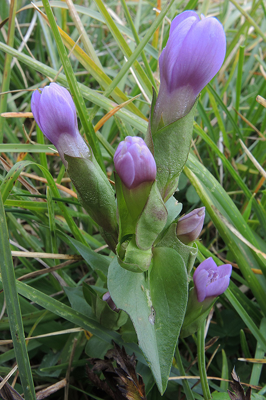 Unweit des Albinos blüht die Pflanze mit ihren standardgemäss violetten Blüten.