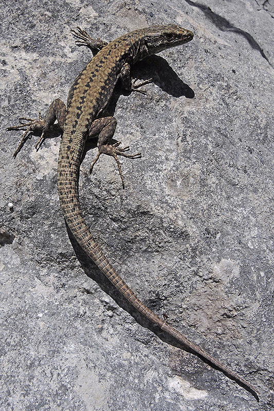 Körperlänge bis 25 cm. Fundort: besonnte Felswände entlang Naturstrasse. |