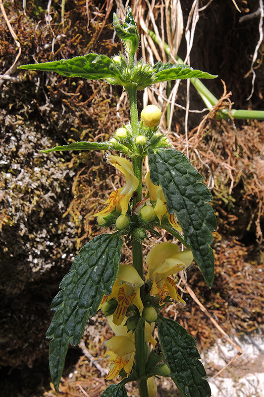 Die Gold-Taubnessel zeigt ihre schön gefärbten Blüten. Informationen zur Pflanze: Art: Gold-Taubnessel (Lamium galeobdolon). Verbreitung: Gemässigtes Eurasien, in Nordamerika eingeschleppt. Regionale Verbreitung Alpen: In Höhen bis 2000 m, zerstreut. In den nördlichen Kalkalpen in ausgedehnten Beständen, in den Zentralketten gebietsweise nur vereinzelt. Vorkommen: Nährstoffreiche, lockere, steinige Böden mit guter Wasserführung - lichte Laubwälder, krautreiche Nadelwälder, alpine Zwergstrauchheiden. Wuchshöhe: 15 - 60 cm. Blüte: Mai - Juni, Blütenlänge um 2.2 cm. |