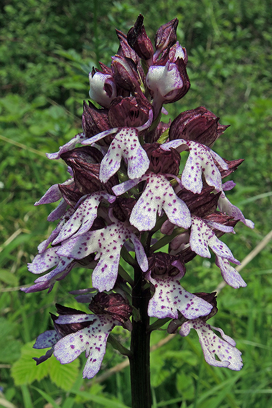 In den moorigen Wiesen blüht ein einsames Exemplar des Purpur-Knabenkrauts. Die Pflanze ist eine der grössten einheimischen Orchideen. Informationen zur Pflanze: Art: Purpur-Knabenkraut (Orchis purpurea). Verbreitung: Die Nordgrenze der Verbreitung liegt in Südengland und Dänemark, im Süden ist die Art bis Südspanien, Nordost-Sizilien, Peleponnes und den Süden der Türkei zu finden. Im Osten erstreckt sich die Verbreitung durch die mittlere Türkei bis zur Krim. Regionale Verbreitung Alpen: Nur am Rand der Alpen, in der Schweiz lediglich nördlich einer Linie Lausanne - Murten - Luzern - St.Gallen. In den Seealpen in Höhen bis etwa 1250 m, sonst kaum über 1000 m. Vorkommen: Mullreiche, meist kalkhaltige oder zumindest basenreiche, lockere, feuchte, vorzugsweise halbschattige Böden - lichte Laub- oder Mischwälder, Waldsäume, Gebüsch, magere Halbtrockenrasen. Wuchshöhe: 25 - 90 cm. Blüte: Mai. |