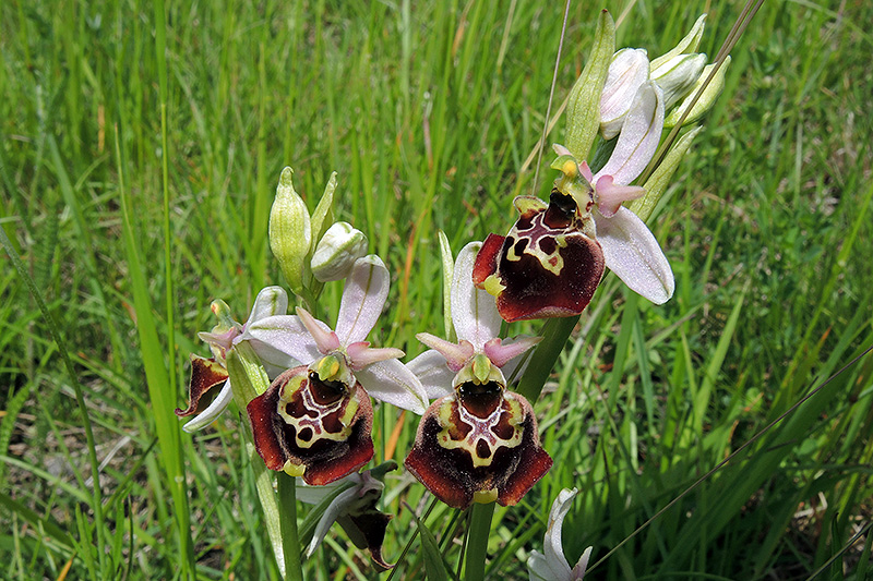 Am Rheindamm blühen vom Helikopterplatz Balzers bis zu den Wäldern am Ellhorn mehrere hundert Exemplare des Hummel-Ragwurz. Informationen zur Pflanze: Art: Hummel-Ragwurz (Ophrys holoserica). Verbreitung: Europäisch, mediterran, submediterran, nördlich bis Südengland, West- und Mitteldeutschland, Nordbayern, Südostösterreich. Regionale Verbreitung Alpen: Nördliche Kalkalpen in Höhen bis 1000 m, südliche Kalkalpen bis 1500 m, selten. Vorkommen: Tiefgründige, humusreiche Kalk- oder Lössböden - Magerwiesen, Halbtrocken- und Trockenrasen, grasige Dämme, buschige Hänge, lichte Föhren-Eichenwälder, trockenere Stellen von Feuchtwiesen. Wuchshöhe: 10 bis 30 cm. Blüte: Mai - Juli, Länge Sepalen (äussere Blütenblätter, Kelchblätter) 10 - 14 mm, Petalen (innere Blütenblätter, Kronblätter) 3 - 6 mm, Lippe 8 - 12 mm lang und 12 - 18 mm breit. |