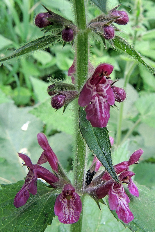 Die fliederartig duftenden Blüten des Wald-Ziestes stehen in lockeren, meist sechsblütigen Scheinquirlen. Informationen zur Pflanze: Art: Wald-Ziest (Stachys sylvatica). Verbreitung: Gemässigtes und kühleres Europa, Asien bis zum Himalaja, Makaronesien. Regionale Verbreitung Alpen: In Höhen bis 1800 m, zerstreut. Vorkommen: Lockere, lehmige, steinige, feuchte, stickstoffreiche Böden - Laubmischwälder, Waldränder, Gebüsche, schattige Strassenränder. Wuchshöhe: 30 - 120 cm. Blüte: Juni - September, Länge Blüten 1,2 - 1,5 cm. |