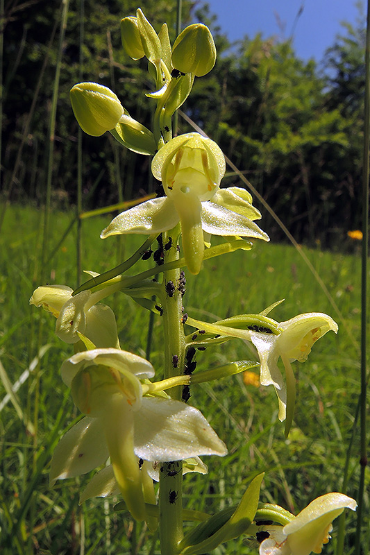 Anfang Juni zeigen sich die ersten Exemplare des Grünlichen Breitkölbchens. Informationen zur Pflanze: Art: Grünliches Breitkölbchen (Platanthera chlorantha). Verbreitung: Nordwärts bis ins südliche Skandinavien, Island und Grossbritannien, südwärts bis Nordspanien, Sizilien und Peleponnes. Ostwärts erstrecken sich die Vorkommen über Westasien, China bis nach Korea und Japan. Regionale Verbreitung Alpen: In Höhen bis 1800 m, zerstreut. Vorkommen: Basenreiche, häufig wechselfeuchte, kalkhaltige Böden - lichte Laub- und Nadelwälder, Gebüschzonen, Waldränder, Mager- und Feuchtwiesen. Wuchshöhe: 20 - 60 cm. Blüte: Mitte Mai - Juli. |