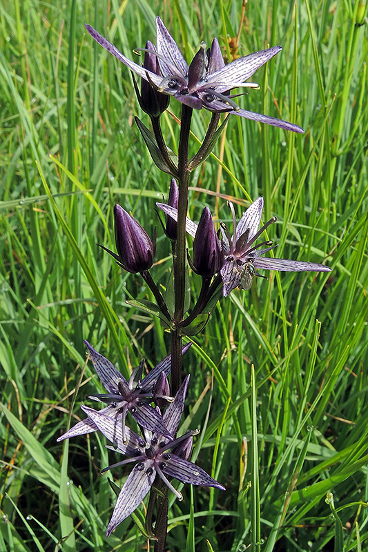 Die stahlblauen bis trübvioletten Blüten des Moorenzians sitzen in lockeren Rispentrauben und sind sternförmig ausgebreitet. Informationen zur Pflanze: Art: Moorenzian (Swertia perennis). Verbreitung: Mittel- und südeuropäisch, von den Pyrenäen über die Alpen bis zum Balkan. Regionale Verbreitung Alpen: Bis in Höhen von 2500 m, zerstreut. Vorkommen: Kalkhaltige Flachmoore, Sumpfwiesen. Wuchshöhe: 15 - 60 cm. Blüte: Juli - August, Durchmesser Blüte 2 - 3 cm. |