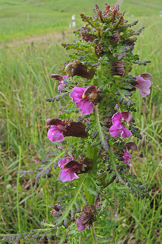 Beim Sumpf-Läusekraut sind die rosafarbenen bis violetten Blüten einzeln in Blatt- und Triebachseln angeordnet und bilden eine Ähre. Informationen zur Pflanze: Art: Sumpf-Läusekraut (Pedicularis palustris). Verbreitung: Eurosibirisch-nordamerikanisch, in Europa von Nordeuropa bis Norditalien, Ural. Regionale Verbreitung Alpen: In Höhen bis 2200 m, vereinzelt. Vorkommen: Feuchte, torfige Böden - Sumpfwiesen, Moore. Wuchshöhe: 15 - 70 cm. Blüte: Mai - Juli, Länge Krone 1,3 – 2,2 cm. |