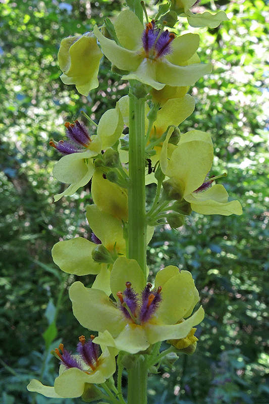 Die wollig behaarten Staubfäden der Dunklen Königskerze sind von purpurvioletter Farbe. Informationen zur Pflanze: Art: Dunkle Königskerze (Verbascum nigrum). Verbreitung: Eurosibirisch, in Portugal, Irland und Südosteuropa fehlend. Regionale Verbreitung Alpen: In Höhen bis 1500 m, zerstreut bis verbreitet. Vorkommen: Trockene, sonnige, nährstoffreiche, kalkarme, sandige Lehmböden - Schuttplätze, Böschungen, Wegränder, Trockenwiesen, lichte Wälder. Wuchshöhe: 30 – 100 cm. Blüte: Juni - September, Durchmesser Blüte 1,5 – 2,5 cm. |