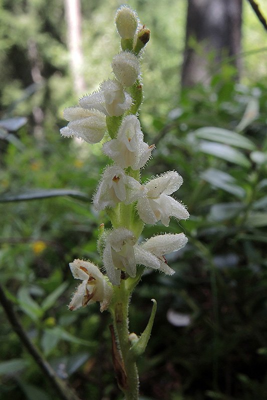 Die Bestäubung der Blüten erfolgt in erster Linie durch Hummeln. Informationen zur Pflanze: Art: Moosorchis (Goodyera repens). Verbreitung: Europa mit Ausnahme der mediterranen Gebiete, Kaukasien, Zentralasien, Himalaya, ostasiatische Gebirge, boreale Zone und Gebirge Nordamerikas. Regionale Verbreitung Alpen: In Höhen bis 2000 m, zerstreut. Vorkommen: Halbschattige, moosige, basische bis saure, nährstoffarme Nadelstreu-Rohhumusböden - Nadelwälder, Mischwälder. Wuchshöhe: 5 - 25 cm. Blüte: Mitte Juni - Ende August, Länge Lippe und Perigonblätter 4 mm. |