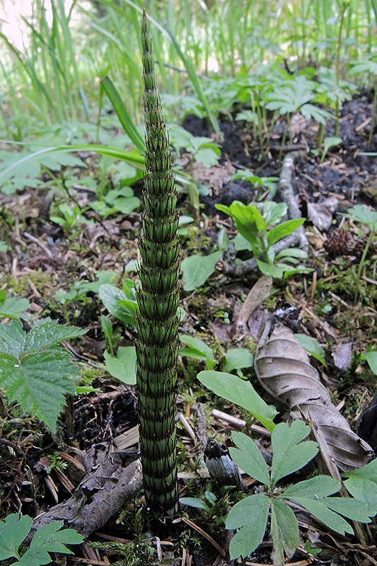Der elfenbeinfarbige, bis über einen Meter hohe sterile Stengel bildet quirlig angeordnete, lange, hellgrüne Äste aus. Informationen zur Pflanze: Art: Riesen-Schachtelhalm (Equisetum telmateia). Verbreitung: Europa mit Ausnahme von Nord- und Nordosteuropa, Vorderasien, Nordafrika und grosse Teile des westlichen Nordamerikas. Regionale Verbreitung Alpen: In Höhen bis 1300 m. Vorkommen: Kalkhaltige, halbschattige, sickernasse Quellfluren - Laub- und lichte Nadelwälder. Wuchshöhe: Sterile Stengel 40 - 150 cm. Blüte: März - Mai, fertile Stengel 20 – 50 cm hoch, bis 1,5 cm dick. |