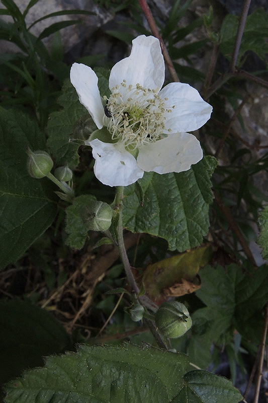 Die Blaue Brombeere ist ein kriechendes Sträuchlein mit aufrechten Zweigen und kurzen, schwachen Stacheln. Informationen zur Pflanze: Art: Blaue Brombeere (Rubus caesius). Verbreitung: Europa, Nordasien. Regionale Verbreitung Alpen: Nördlich der Alpen in Höhen bis 1000 m, südlich bis 1200 m. Zerstreut, im kristallinen Gestein gebietsweise, im nördlichen Tiefland gänzlich fehlend. Vorkommen: Feuchte bis nasse, nährstoffreiche, vorzugsweise kalkhaltige Lehm- oder Tonböden - Auwälder, Fluss- und Bachufer, Hecken, Böschungen, Schuttplätze, Äcker. Wuchshöhe: Rutenlänge 30 - 60 cm. Blüte: Juni - September, Länge Kronblätter 7 – 10 mm. |