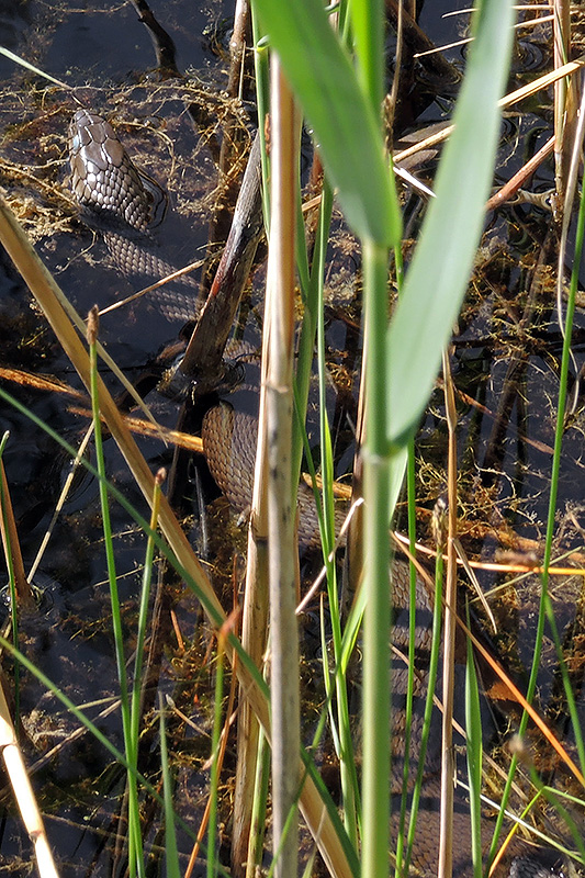 Körperlänge Männchen bis 75 cm, Weibchen bis 150 cm. Fundort: Ufer eines Teiches im Moor. |