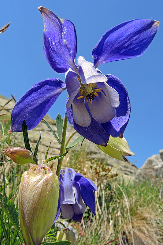 Erste Blüten der Alpen-Akelei haben sich geöffnet. Informationen zur Pflanze: Art: Alpen-Akelei (Aquilegia alpina). Verbreitung: Westalpin-apenninisch. Regionale Verbreitung Alpen: Von den Seealpen bis nach Vorarlberg und Südtirol, in Höhen zwischen 1200 und 2600 m, selten. Vorkommen: Lockere, steinige, feuchte, kalkhaltige, schattige Böden - Zwergstrauchheiden, lockere Grünerlenbestände. Wuchshöhe: 20 - 70 cm. Blüte: Juni - August, Durchmesser Blüte 6 - 9 cm. |