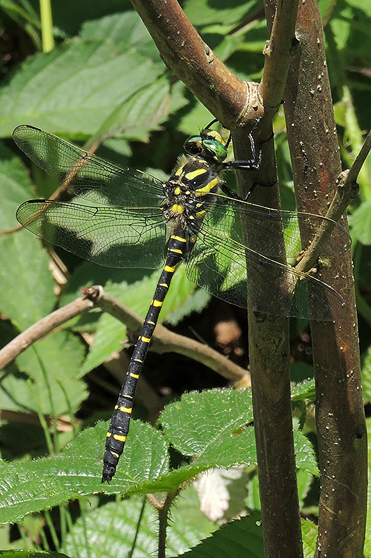 Die Zweigestreifte Quelljungfer ist eine der grössten heimischen Libellenarten. Der Entomologe James Bolton hat die Art 1796 in Yorkshire entdeckt, der Artname boltonii wurde zu seinen Ehren vergeben. Informationen zum Tier: Art: Zweigestreifte Quelljungfer (Cordulegaster boltonii). Verbreitung: Von Nordwestafrika und der Iberischen Halbinsel über West- und Mitteleuropa ostwärts bis nach Russland und nordwärts bis Mittelskandinavien. Lebensräume: Als reine Fliessgewässerart benötigen die Tiere Bergbäche oder sandgründige Tieflandbäche mit hoher Wasserqualität. Manchmal handelt es sich nur um schmale Rinnsale wie Gräben, breitere oder schnell fliessende Gewässer werden hingegen weitestgehend gemieden. Merkmale: Die Körperlänge beträgt bis 90 mm, die Flügelspannweite zwischen 90 und 110 mm. Der Thorax ist schwarz und weist gelbe Antehumeralstreifen und Seitenbinden auf. Der ebenfalls schwarze Hinterleib (Abdomen) hat gelbe, in der Mitte meistens unterbrochene Querbinden, wobei sich jeweils eine breitere in der Segmentmitte und eine schmälere am hinteren Rand des Segmentes befindet. Die Augen sind grün, das hinten zwischen den Augen gelegene Hinterhauptdreieck ist gelb. Die Vorder- und Hinterflügel weisen entlang der Vorderkanten eine hellgelbe Färbung auf. Die Weibchen verfügen am Ende des Abdomens über einen stark entwickelten Legebohrer. Die Tiere zeigen keinen Sexualdimorphismus, die Färbung ist bei beiden Geschlechtern in etwa gleich. Lebensweise: Zweigestreifte Quelljungfern sind keine sehr ausdauernden Flieger. Die Männchen kennen keine festen Territorien. Sie patrouillieren in niedrigem und langsamen Suchflug entlang der besiedelten Gewässer auf der Suche nach Beute oder Weibchen. Suchflüge von wenigen Minuten Dauer werden durch ausgedehnte Pausen in der unmittelbaren Ufervegetation unterbrochen. Die Weibchen sind kaum zu sehen. Sie kommen wahrscheinlich nur zur Eiablage ans Gewässer. Nahrung: Die Imagines ernähren sich von Fliegen, Mücken, Schnaken, aber auch von grossen Tagfaltern oder anderen Gross- und Kleinlibellen. Auch wehrhafte Insekten wie Wespen oder Honigbienen werden bejagt. Die Larven ernähren sich von Bachflohkrebsen, Muschelkrebsen, Käfern sowie aquatil lebenden Larven diverser Insekten, auch Kannibalismus zwischen den Libellenlarven kommt vor. Paarung: Von Männchen entdeckte Weibchen werden sofort ergriffen, das Paar bildet dann die Tandemformation. Die Paarung mittels Paarungsrad wird sitzend in der nahen Vegetation verbracht und kann bis zu einer Stunde dauern. Ei: Die anschliessende Eiablage vollzieht sich ohne Begleitung des Männchens in einer eigentümlichen, nur für Cordulegaster-Arten typischen Weise. In etwa senkrechter Körperhaltung pflügen die fliegenden Weibchen die Eier mit ihrem speziell ausgebildeten, langen Legeapparat regelrecht in das Bodensubstrat des Gewässers. Das Tier macht dabei Setzbewegungen im Ein- bis Zweisekundentakt, wobei immer einige Eier in den Boden 'eingeimpft' werden. Durch das oftmalige Einstossen des Legeapparates in das Substrat nutzt sich dieser mit der Zeit stark ab. Larve: Die mit über 40 mm Länge sehr grossen und kräftigen Larven leben eingegraben im Substrat strömungsarmer, vegetationsloser Abschnitte wenig verschmutzter Bäche und Gräben. Besonders Ruhigwasserstellen, wie sie durch Stauhindernisse, Auskolkungen oder Gleithänge in einem Bachmäander entstehen, werden besiedelt. Darüber hinaus kommen die Larven in seichten Randbereichen der Quellrinnen von Kalkquellmooren, in kleinen Quell- und Sinterbecken mit Kalktuff oder auch in nassen Moospolstern vor. Ihre Entwicklungsdauer beträgt je nach Biotopverhältnissen und Wassertemperaturen 3 - 7, meist wohl 4 - 5 Jahre. Die Larven sind vorwiegend nachtaktive, passive Lauerjäger, die sich im Sediment verbergen und nur mit den Augen herausschauen. Bei absinkendem Wasserspiegel suchen sie tiefere Wasserlöcher auf, verkriechen sich unter Steinen, Moos oder Falllaub oder graben sich im Schlamm ein. Imago: Der Schlupf der Imagines aus dem letzten Larvenstadium erfolgt überwiegend in den frühen Morgenstunden unmittelbar am Ufer und dauert meist über 4 Stunden. Gelegentlich entfernen sich die Larven aber auch mehrere Meter vom Wasser. Die Exuvien findet man meist mit dem Kopf etwas nach hinten geneigt an senkrechten oder überhängenden Strukturen in krautiger Vegetation, an Steinen oder an Wurzeln. Während die geschlüpften Libellen ausreifen, fliegen sie abseits vom Gewässer an besonnten Stellen von Wiesen oder Waldlichtungen. Die Flugzeit liegt in Mitteleuropa zwischen Anfang Juni und Ende September bis Anfang Oktober, mit einem Schwerpunkt im Juli und August. Lebenserwartung: Bis zu 80 Tagen. Feinde: Vögel, Frösche, Spinnen, Wespen, Hornissen. Webspinnen und Ameisen können frisch geschlüpfte Libellen attackieren und verzehren. Larven werden von Fischen gefressen. |