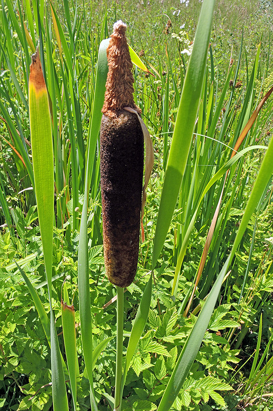 Der Silber-Rohrkolben ist ein praealpines Florenelement. Informationen zur Pflanze: Art: Silber-Rohrkolben (Typha shuttleworthii). Verbreitung: Von den Ostpyrenäen über Südfrankreich, die Westalpen der Schweiz, Süddeutschland und Norditalien, bis Österreich, Slowenien, Mazedonien und bis ins Vorland der Karpaten, mit Verbreitungszentrum nördliche Westalpen, selten. Ausserhalb Europas auch in der Türkei und im Iran. Regionale Verbreitung Alpen: Bis in Höhen von 840 m. Vorkommen: Nährstoffarme wie nährstoffreiche Standorte, meist in frischem, sich rasch erneuerndem Wasser - Verlandungsgürtel von Tümpeln und Seen, schlickgefüllte Lachen auf Kiesbänken von Alpenflüssen, wassergefüllte alte Torfstiche, Feuchtwiesen, Sümpfe. Wuchshöhe: 80 - 150 cm. Blüte: Juni - Juli. Der männliche Kolbenteil ist durch Tragblätter in etwa 5 Abschnitte gegliedert und etwa halb so lang wie der 6 - 11 cm lange weibliche Kolbenteil. |
