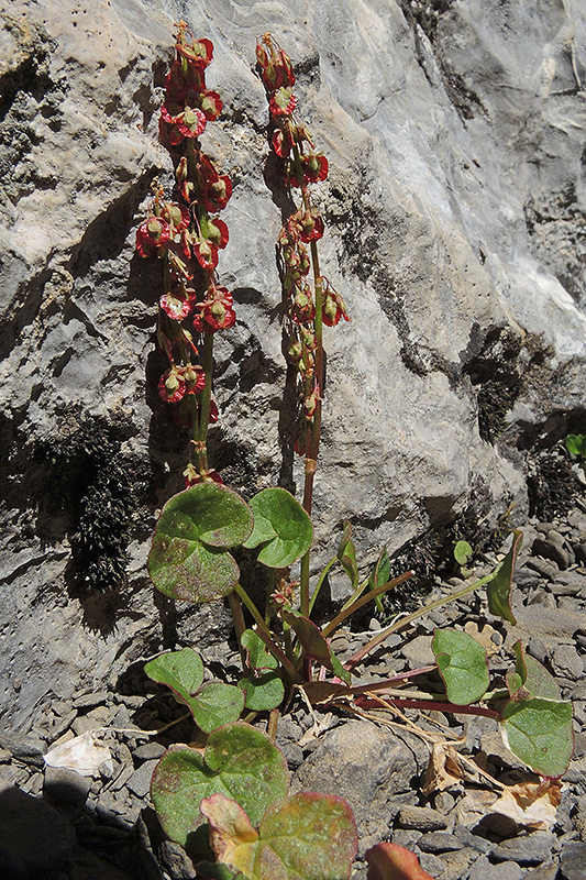 Im Geröll blüht der Säuerling. Informationen zur Pflanze: Art: Säuerling (Oxyria digyna). Verbreitung: Pyrenäen, Alpen, Karpaten bis Asien, arktische Region. Regionale Verbreitung Alpen: Überwiegend in den zentralen Ketten, in Höhen zwischen 1700 und 3400 m, zerstreut. Vorkommen: Kalkarme, feuchte Böden - Felsschutt, schneefeuchter Steinrasen. Wuchshöhe: 5 - 30 cm. Blüte: Juli - August. |