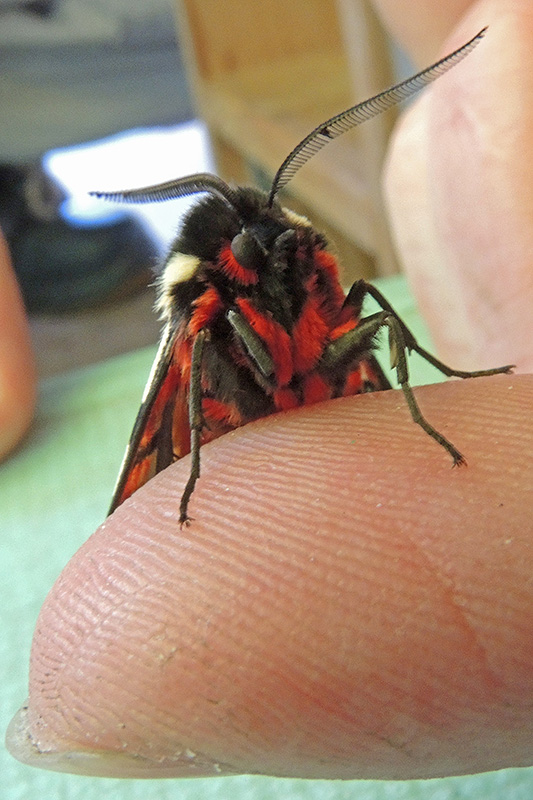 Die kammartigen Fühler weisen den Falter als männliches Tier aus. Informationen zum Tier: Art: Schwarzer Bär (Arctia villica). |
