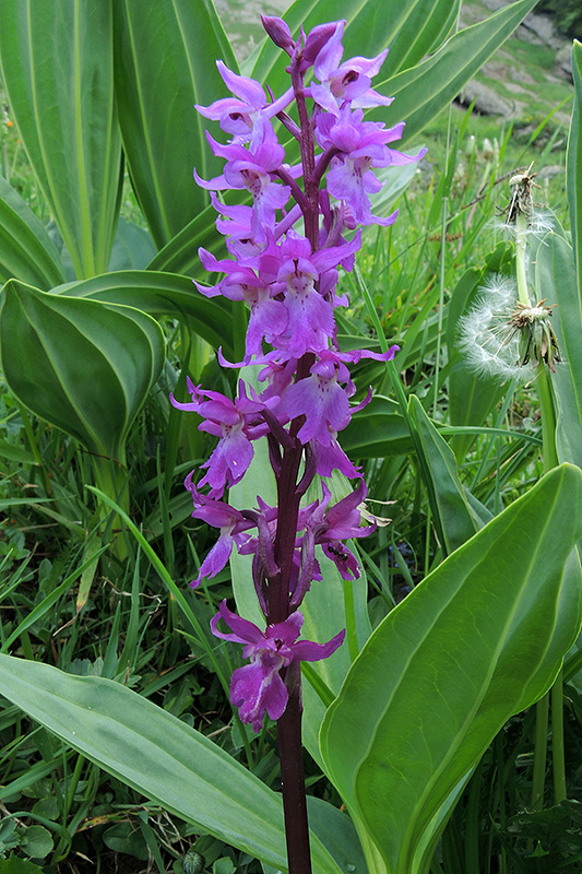 Die Blüten des Männlichen Knabenkrauts bilden einen herrlichen Kontrast zum Grün der noch heranwachsenden Pflanzen.