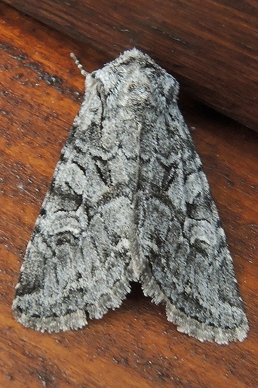 Graue Bergraseneulen sind aktuell oft zu entdecken. Informationen zum Tier: Art: Graue Bergraseneule (Lasionycta proxima, Syn. Lasionhada proxima). Verbreitung: Die Verbreitung der Art reicht von Spanien lückenhaft durch Europa und weiter östlich bis nach Ostasien (Amurgebiet). Sie fehlt im Nordwesten der Britischen Inseln. Im Norden reicht das Vorkommen bis nahe an den Polarkreis, im Süden durch den Mittelmeerraum bis zum Kaukasus und zur Mongolei. Regionale Verbreitung Alpen: Bis in Höhen von 2500 m, verbreitet und zuweilen sehr häufig. Lebensräume: Offene Krautgrasflur felsiger, warmer Halden mit krüppelhafter, lichter Gebüschvegetation in Wiesentälern der unteren Bergstufe, auch montane Tannen- und Fichtenwälder, hochmontane Borstgrasrasengebiete oder trockene Waldränder. Merkmale: Die Flügelspannweite der Falter beträgt 28 - 36 mm. Die Farbe der Vorderflügel variiert wegen klimatischer oder geologischer Einflüsse von schiefer- und silbergrau über graubraun bis zu blaugrau oder violettgrau. Nieren- und Ringmakel sind gross, oftmals deutlich hellgrau, teilweise graubraun gefüllt und von einem dunklen Mittelfeld eingerahmt. An der Wurzel ist ein kurzer schwarzer Basalstrich erkennbar. Von der Wellenlinie erstreckt sich nach aussen bis zum Saum ein etwas verdunkelter Bereich. Die Ringmakel haben eine markante, leicht schräg positionierte, elliptische Form. Bei den Männchen sind die Hinterflügel einfarbig hell graubraun, bei den Weibchen etwas dunkler. Die Adern treten deutlich hervor. Ei: Das Eistadium liegt im Juli und August. Raupe: Die Raupen sind von mattbrauner Farbe, haben eine feine, weissliche Rückenlinie, die nur auf den ersten Segmenten deutlicher hervortritt sowie undeutliche, helle Nebenrückenlinien, die nach unten dunkel begrenzt sind. Markant sind die schwarzen Stigmen und der hellbraune Kopf. Die Raupen treten überwiegend ab August und nach der Überwinterung bis Mai oder Juni auf. Sie ernähren sich nachts polyphag von verschiedenen niedrigen Pflanzen wie Spitzlappiger Frauenmantel (Alchemilla vulgaris), Löwenzahn- (Taraxacum) oder Beifussarten (Artemisia). Puppe: Die Puppe zeigt in der Mitte der Rückensegmente je eine Vertiefung. Am Kremaster befinden sich 8 fächerartig positionierte Borsten. Das Puppenstadium liegt im Mai oder Juni. Falter: Die Falter fliegen in einer Generation von Juni bis August, in den Südalpen in zwei Generationen bis Oktober. Die Falter sind überwiegend nachtaktiv, sind aber in den Alpen auch tagsüber sowie in der Abenddämmerung gelegentlich an Blüten anzutreffen. Sie erscheinen nachts an künstlichen Lichtquellen. |