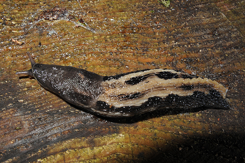 Beim Wegkriechen zeigt er seinen wellenartig ausgeprägten Kiel. Informationen zum Tier: Art: Schwarzer Schnegel (Limax cinereoniger). |