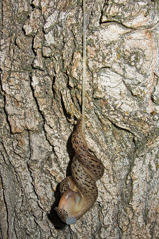 Paarungsablauf Limax maximus Die endgültige Länge des Schleimfadens beträgt gemäss Literaturangaben bis etwa 40 cm. Bei dieser Paarung weist der Schleimfaden eine Länge von 40 cm auf. Informationen zum Tier: Art: Grosser Schnegel (Limax maximus). |