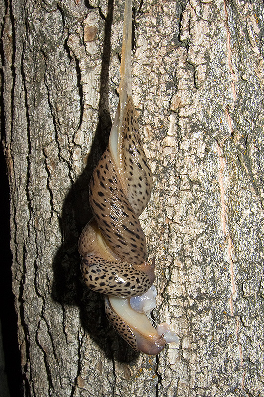 Paarungsablauf Limax maximus Die endgültige Länge des Schleimfadens beträgt gemäss Literaturangaben bis etwa 40 cm. Bei dieser Paarung weist der Schleimfaden eine Länge von 40 cm auf. Informationen zum Tier: Art: Grosser Schnegel (Limax maximus). |