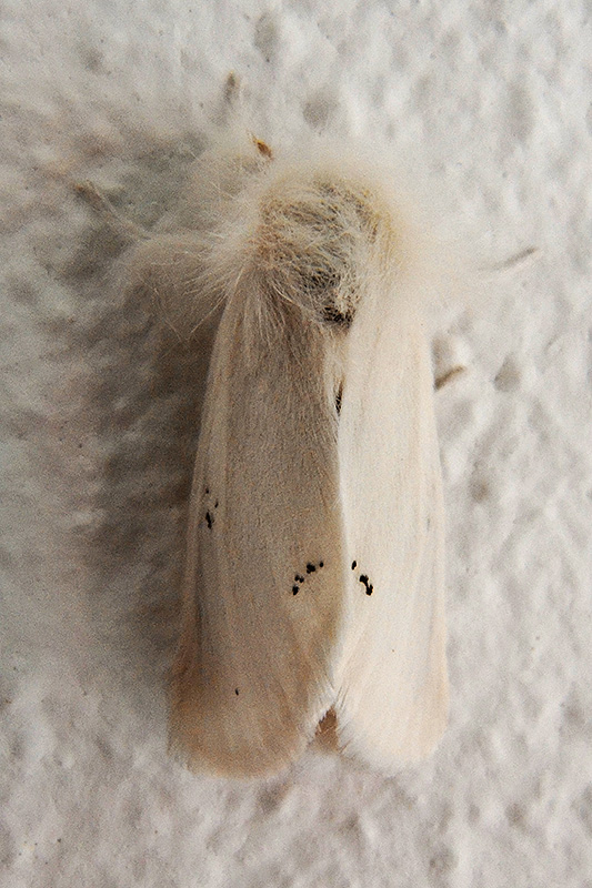 Ein Männchen des Dunklen Goldafters hat sich vom Licht angelockt niedergelassen. Informationen zum Tier: Art: Dunkler Goldafter (Euproctis chrysorrhoea). |