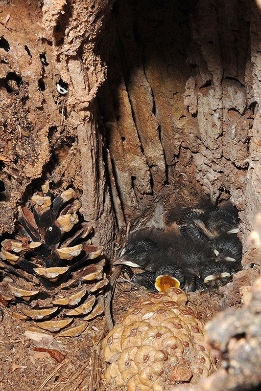 Ein Blick in eine 3 Meter über Boden liegende Höhlung einer alten Weide bringt keine ruhenden Fledermäuse ans Tageslicht ... Informationen zum Tier: Art: Gartenrotschwanz (Phoenicurus phoenicurus). |