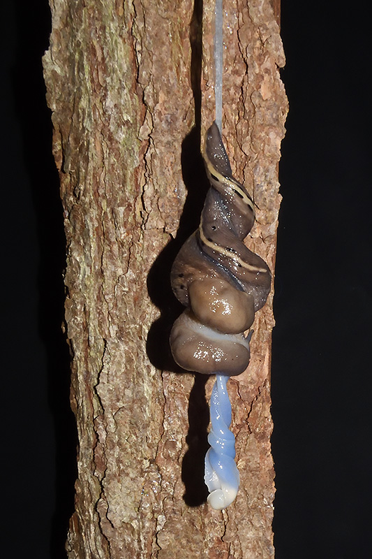 Paarungsablauf Limax sarnensis Die endgültige Länge des Schleimfadens variiert gemäss Literaturangaben zwischen 14 und 70 cm. Bei dieser Paarung weist der Schleimfaden eine Länge von 54 cm auf. Informationen zum Tier: Art: Sarner Schnegel (Limax sarnensis). |