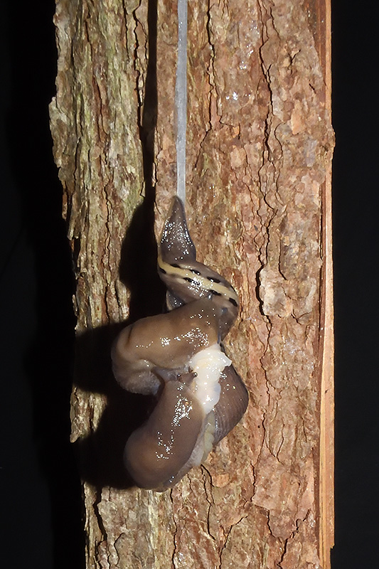 Paarungsablauf Limax sarnensis Die endgültige Länge des Schleimfadens variiert gemäss Literaturangaben zwischen 14 und 70 cm. Bei dieser Paarung weist der Schleimfaden eine Länge von 54 cm auf. Informationen zum Tier: Art: Sarner Schnegel (Limax sarnensis). |
