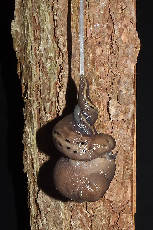 Paarungsablauf Limax sarnensis Die endgültige Länge des Schleimfadens variiert gemäss Literaturangaben zwischen 14 und 70 cm. Bei dieser Paarung weist der Schleimfaden eine Länge von 54 cm auf. Informationen zum Tier: Art: Sarner Schnegel (Limax sarnensis). |