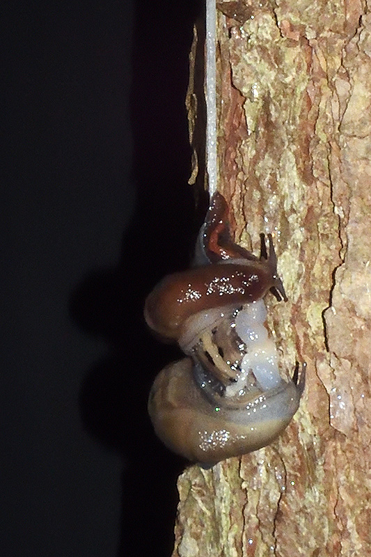 Paarungsablauf Limax sarnensis Die endgültige Länge des Schleimfadens variiert gemäss Literaturangaben zwischen 14 und 70 cm. Bei dieser Paarung weist der Schleimfaden eine Länge von 23 cm auf. Informationen zum Tier: Art: Sarner Schnegel (Limax sarnensis). |