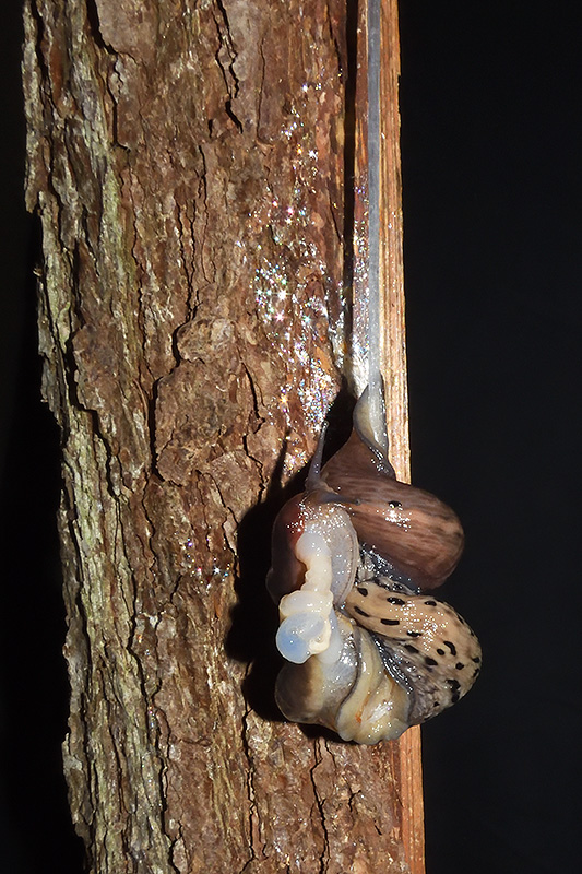Paarungsablauf Limax sarnensis Die endgültige Länge des Schleimfadens variiert gemäss Literaturangaben zwischen 14 und 70 cm. Bei dieser Paarung weist der Schleimfaden eine Länge von 36 cm auf. Informationen zum Tier: Art: Sarner Schnegel (Limax sarnensis). |