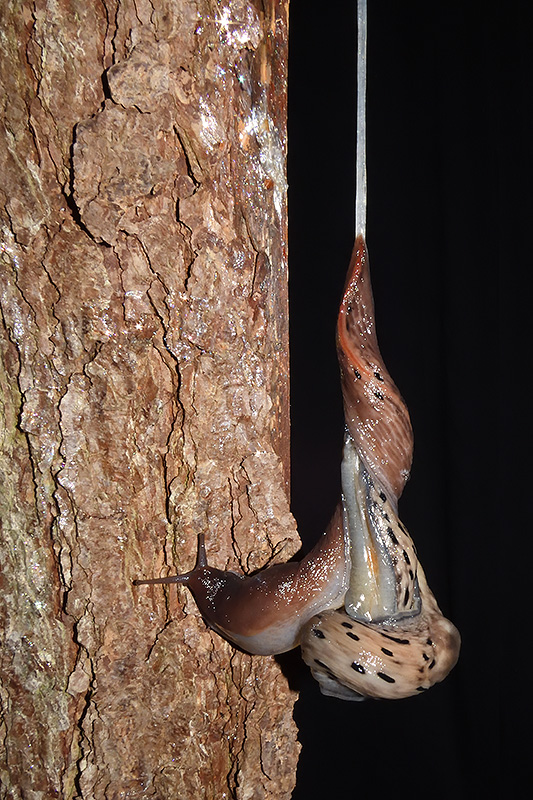 Paarungsablauf Limax sarnensis Die endgültige Länge des Schleimfadens variiert gemäss Literaturangaben zwischen 14 und 70 cm. Bei dieser Paarung weist der Schleimfaden eine Länge von 36 cm auf. Informationen zum Tier: Art: Sarner Schnegel (Limax sarnensis). |